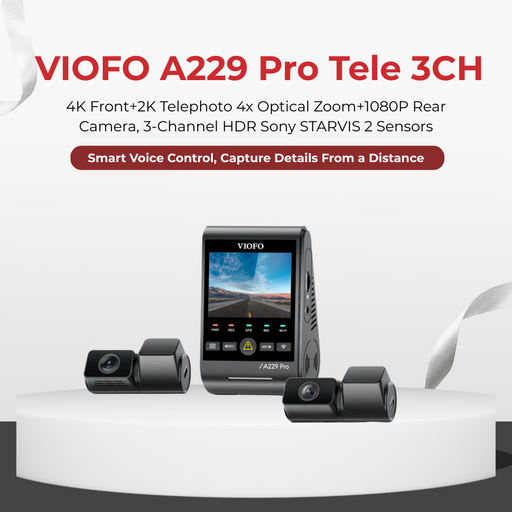 View full detailsVIOFO A229 Pro Tele 3CH 4K+2K Telephoto 4x Optical Zoom+1080P Dash Cam