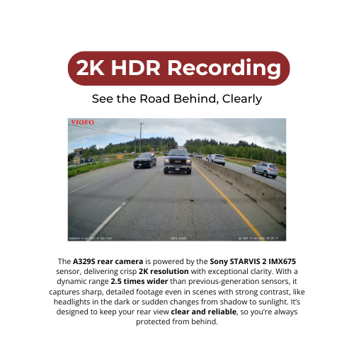 All three lenses in the VIOFO A329S 3-Channel system use the latest Sony STARVIS 2 technology, delivering crisp, noise-free, and color-accurate footage under any lighting conditions.